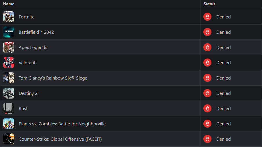The list of incompatible games—which you can find on AreWeAntiCheatYet.com—isn’t massive, but it’s far from limited to niche titles. Some big names are included, and there’s always the risk that future games you might want to play will use a kernel-level anti-cheat.